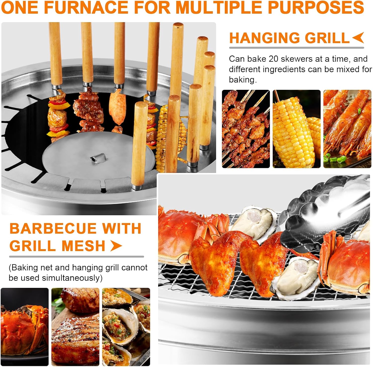 Grelhador a Carvão Portátil Multifuncional sem Fumaça