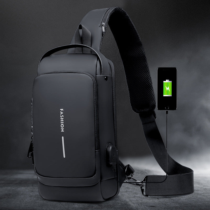 Mochila Peitoral Masculina Antifurto com USB — Impermeável e com Fecho de Código (Sling Bag)